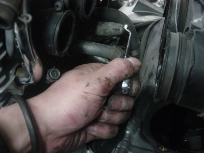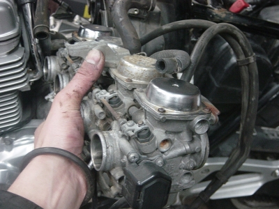 老けて見えてたキャブを外します。指も老けてますね~。