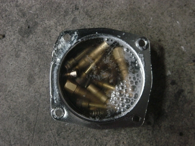 ジェット類はキャブクリに浸けます。(注!入れ歯洗浄剤では落ちませぬ)